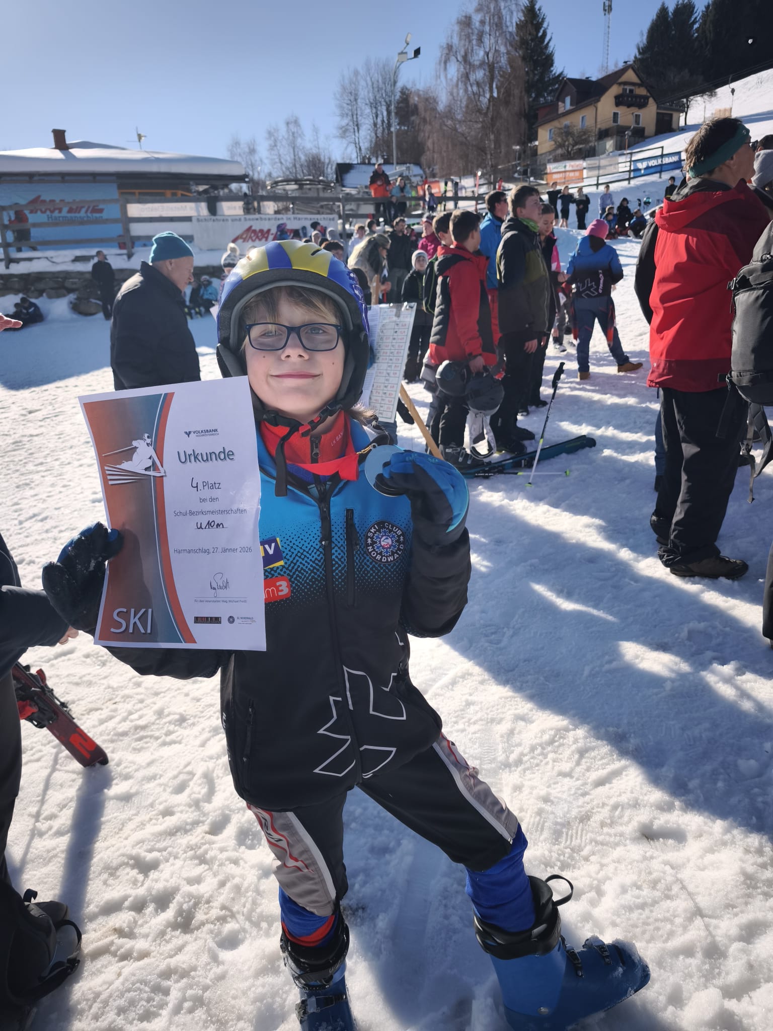 In der Woche vor den Semesterferien durften einige Schülerinnen und Schüler an den Bezirksschimeisterschaften teilnehmen. An einem herrlichen Schitag durften wir in Harmanschlag ein spannendes Rennen bestreiten und uns über tolle Ergebnisse freuen. Wir durften sogar den 4. Platz in der U10-Burschen bejubeln.