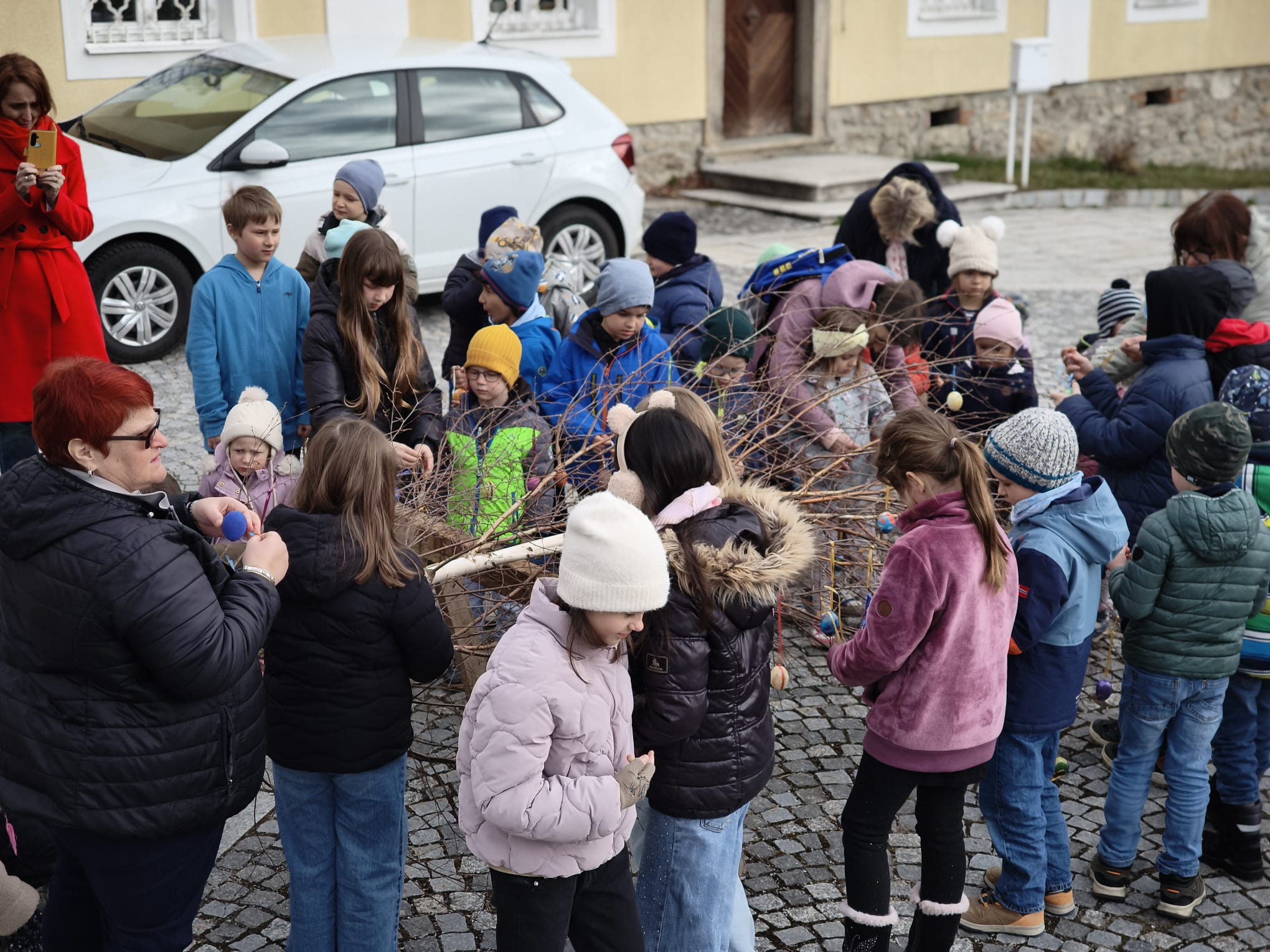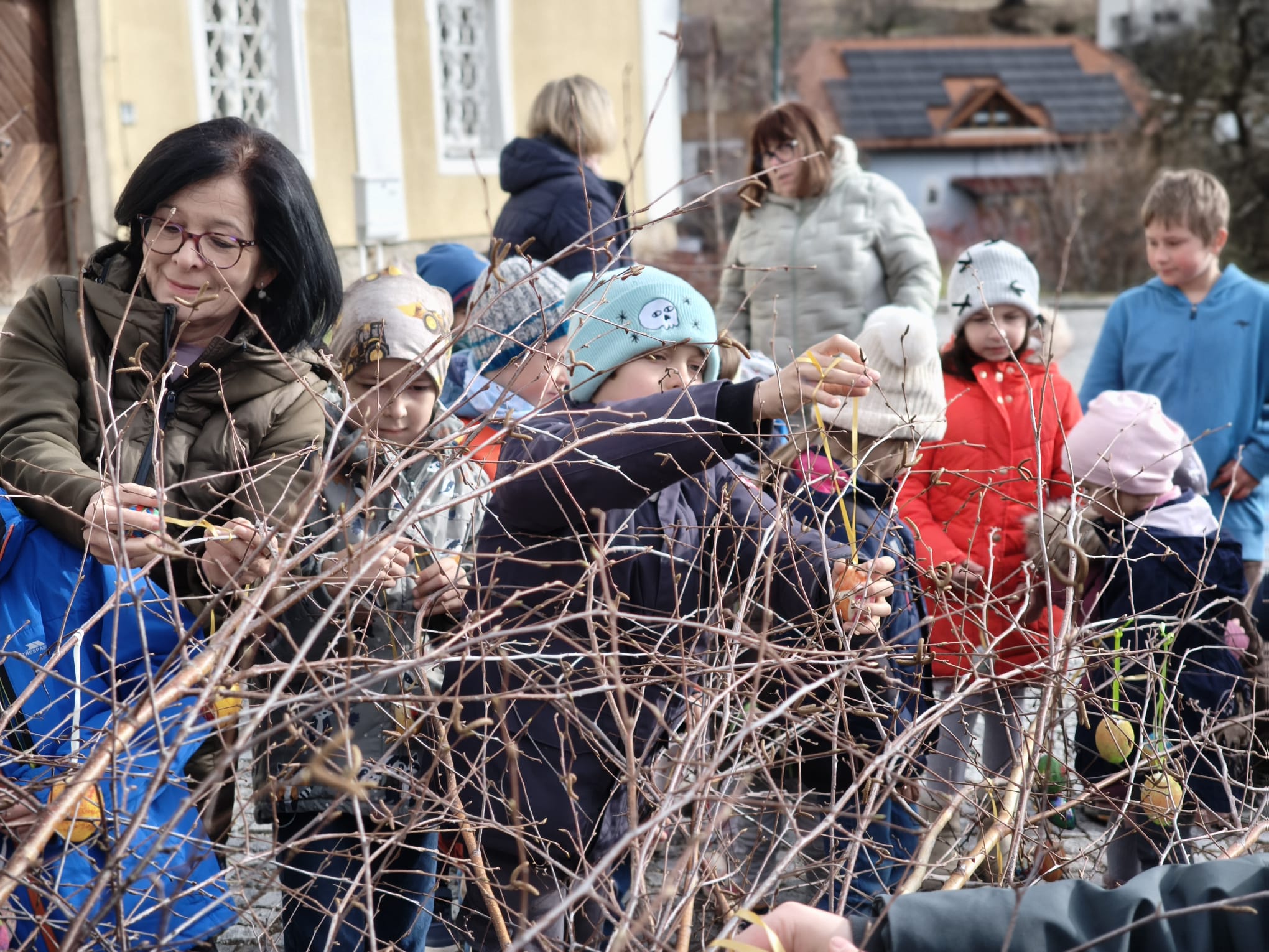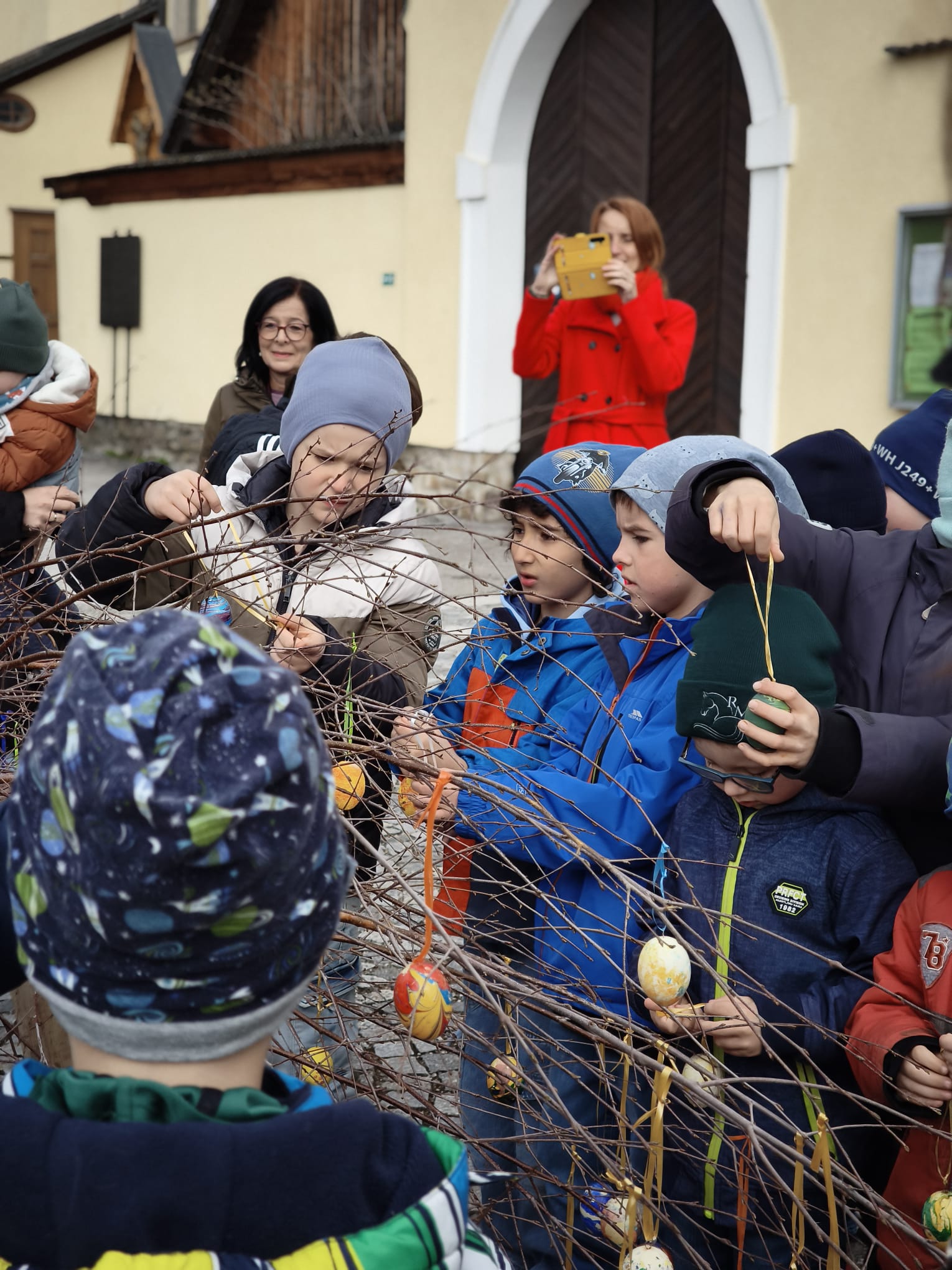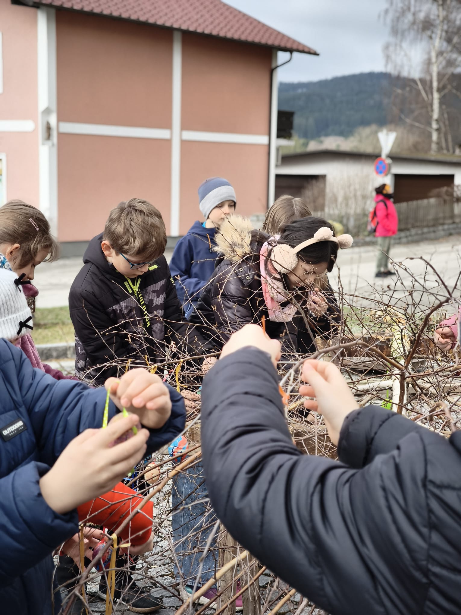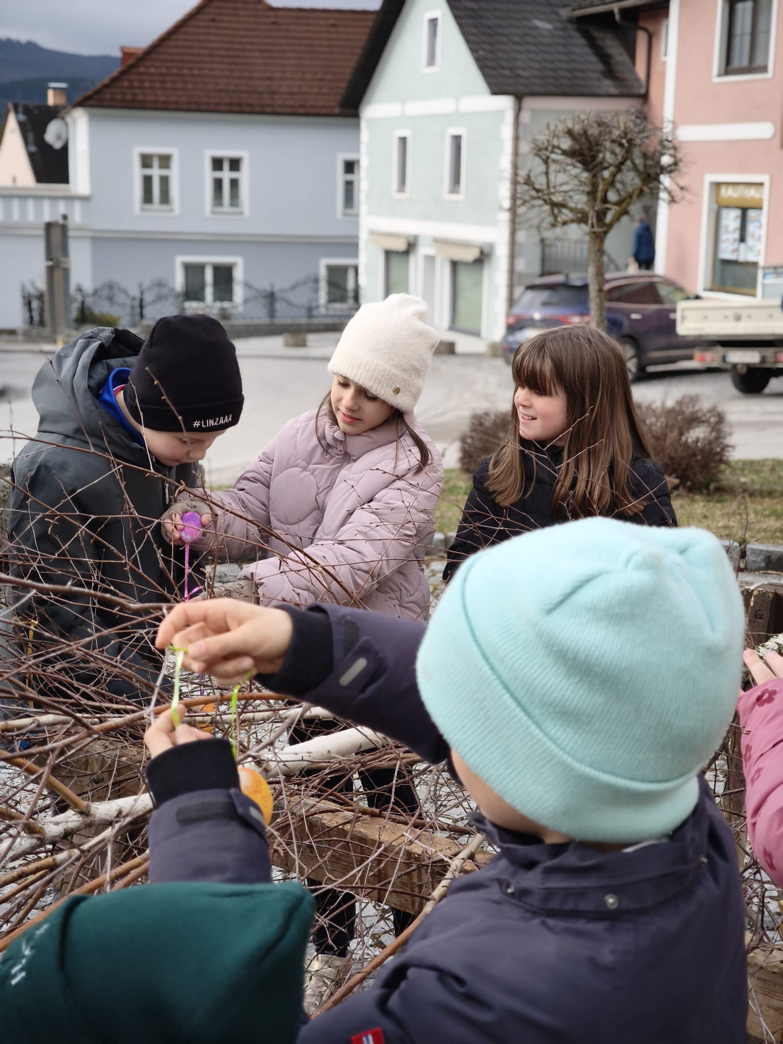 Kurz vor Ostern durften wir den Osterbaum schmücken. Gemeinsam trafen wir uns mit den Kindern des Kindergartens vor der Kirche und gestalteten einen bunten Baum.